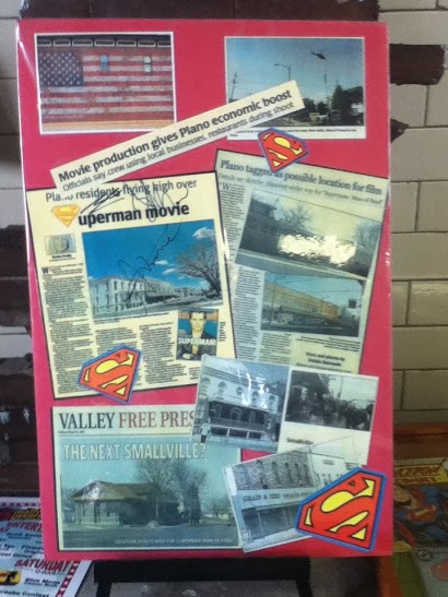 "I've heard a lot of positive results. We've had people from all over the world come to our museum, and sign in. We have a sign-in book that people can put their names and their addresses in, give comments. All of the comments say 'Very Cool,' or...'Great Display'...everything's been very positive," said Mayor Hausler, "[There have been] people from Germany, China, Indonesia, Japan, France, England and many different countries." "Most people that come through here are comic book nuts, and Superman-crazy people, and they love it...they just love it...they sign our book, and we've had people from all over...all over...everywhere...people from Europe...they don't necessary come here for the museum, but, when they've been in town, they've stopped in the museum...from Los Angeles to Washington, DC...they're coming here. Most of them are locals, for sure, but, this year, for instance, I've got a friend here from North Carolina, and he [kind of] came here for SuperFest, but he also has family here, and so forth...he graduated high school in Plano, and wanted to visit with some of his old buddies....last year, I had a buddy up from Reno, Nevada...we had someone here from Los Angeles...so they're all over...all over the place...that's pretty cool, actually," said Gardner, "We've got a cardboard cutout of Henry Cavill, from some advertising...it's a freestanding thing, and everyone poses with that, too. They're standing next to Superman...that's pretty neat. Instead of having a wood cutout, they actually stand next to the guy. It's Henry Cavill, for sure."