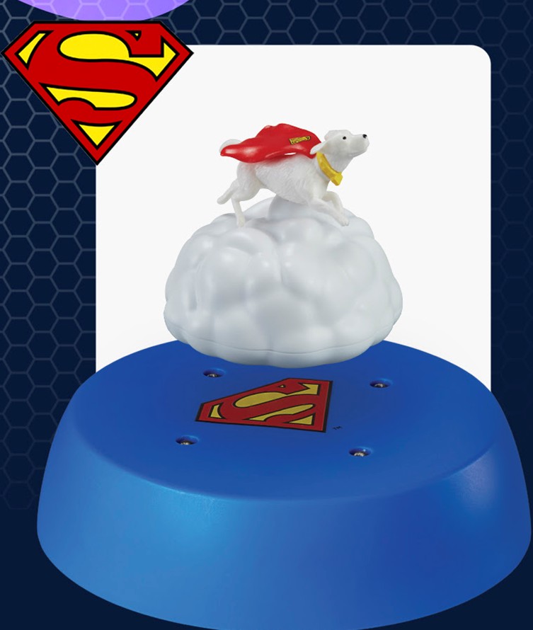 Celebrate the power of friendship and loyalty with this levitating Krypto collectible figurine. Floating gracefully above its base, the 2.5-inch figure of Superman's faithful superdog comes alive with vibrant LED lights and sound effects that respond to your touch. Perfect for dog lovers, DC fans, or anyone looking to add a playful yet heroic centerpiece to their collection.