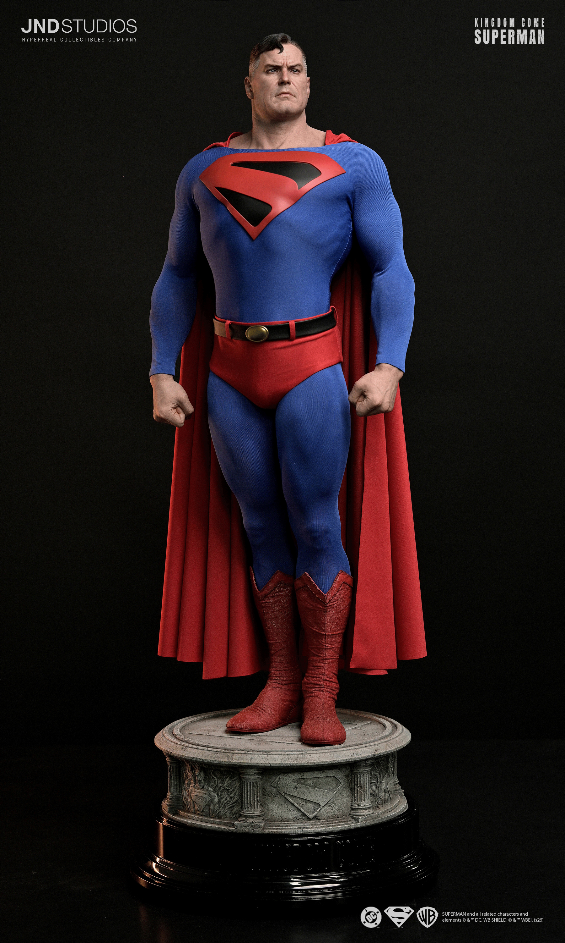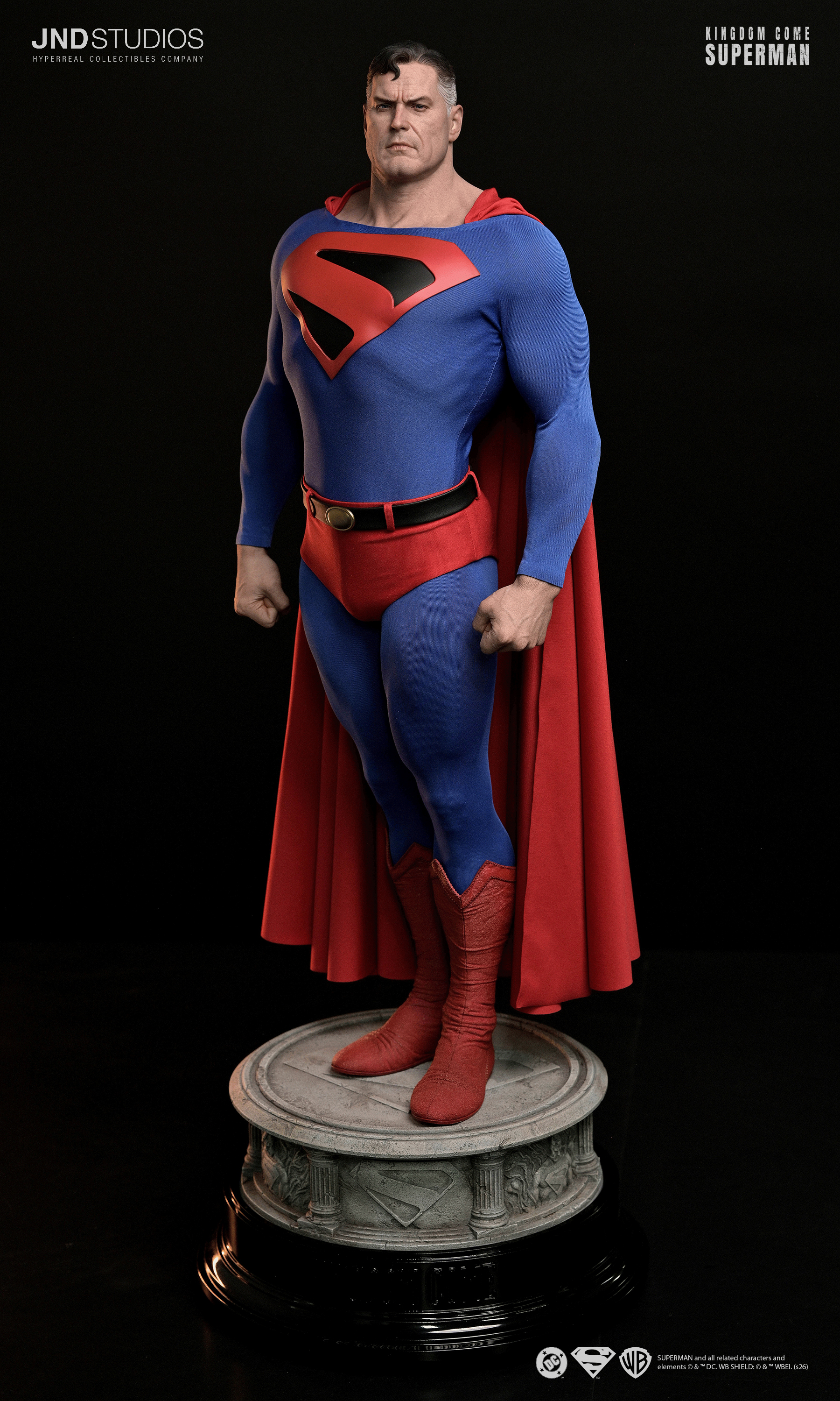 Meticulously crafted, each statue showcases JND Studios' signature approach to realism, featuring a highly detailed likeness and tailored fabric elements, including a realistic costume and flowing cape. One design faithfully captures Superman's mature, commanding presence as depicted in Kingdom Come while the other depicts the classic look of the Man Steel as a member of the Justice League.